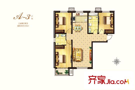 康远・悦中心A-3户型 3室2厅2卫1厨