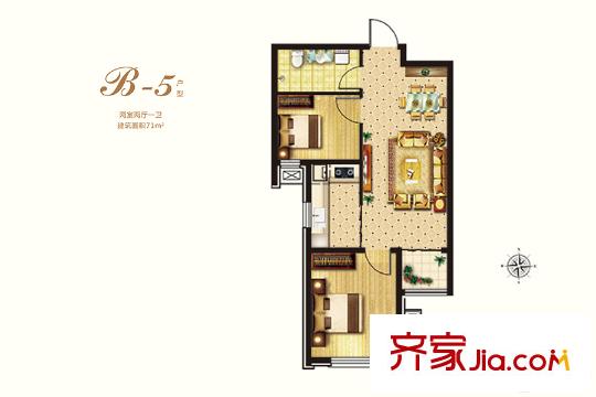 康远・悦中心B-5户型 2室2厅1卫1厨
