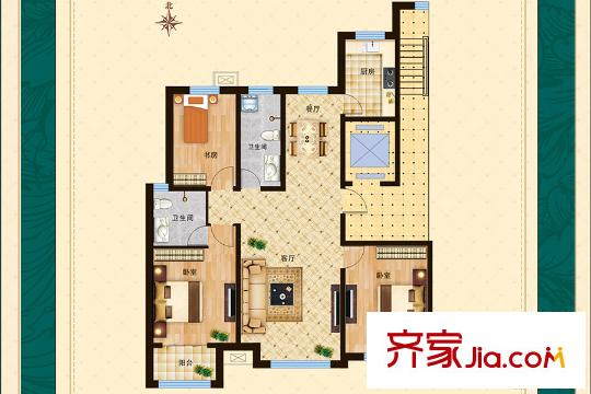 星河源A区D户型 3室2厅2卫1厨