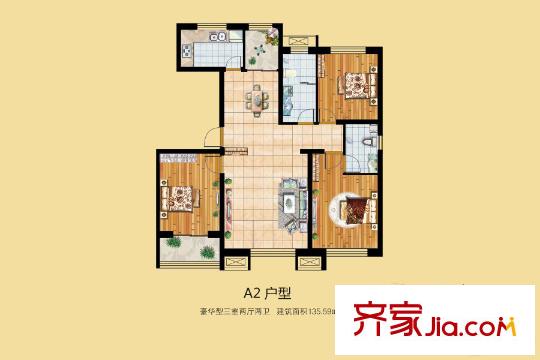 上拓・幸福汇A2户型 3室2厅2卫1厨