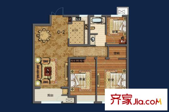 朝阳首府・御园C-1户型 3室2厅2卫1厨