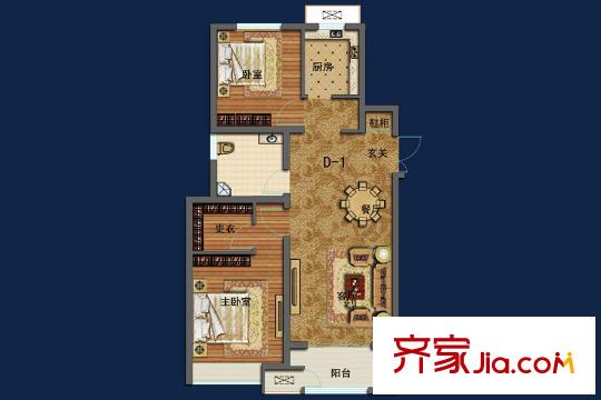 朝阳首府・御园D-1户型 2室2厅1卫1厨