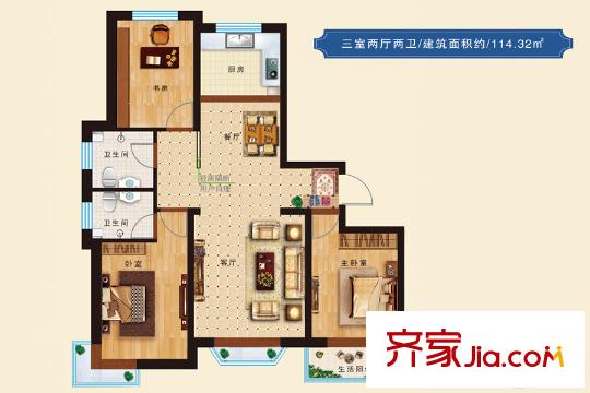 科华・锦绣城114.32平米户型 3室2厅2卫1厨