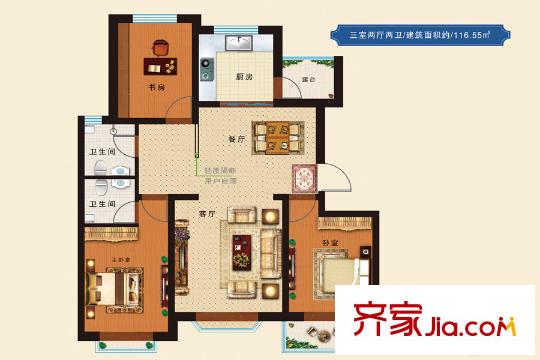 科华・锦绣城116.35平米户型 3室2厅2卫1厨
