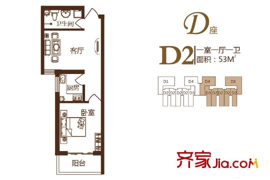 锦绣城二期D座D2户型 1室1厅1卫1厨