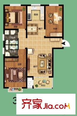 博林学苑2-A户型 3室2厅1卫1厨