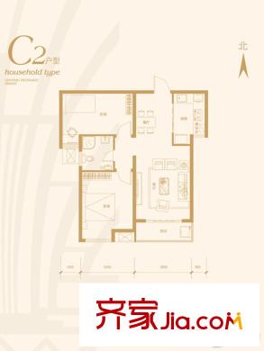 东方云顶2号楼C2户型 2室2厅1卫1厨