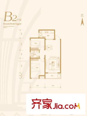 东方云顶2号楼B2户型 2室2厅1卫1厨