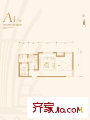 东方云顶1号楼3单元A1户型 1室1厅1卫1厨