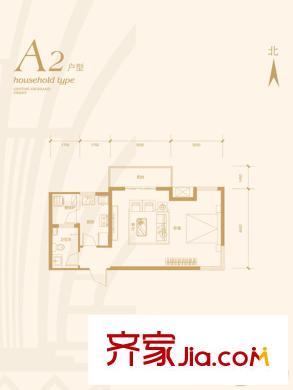 东方云顶2号楼A2户型 1室1厅1卫1厨