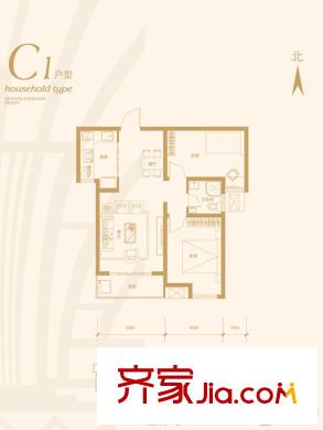 东方云顶1号楼3单元C1户型 2室2厅1卫1厨