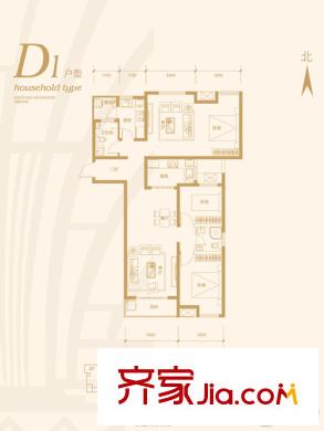 东方云顶1#3单元D1户型 3室2厅2卫2厨