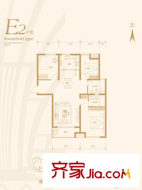 东方云顶2、3号楼 E2户型 3室2厅2卫1厨