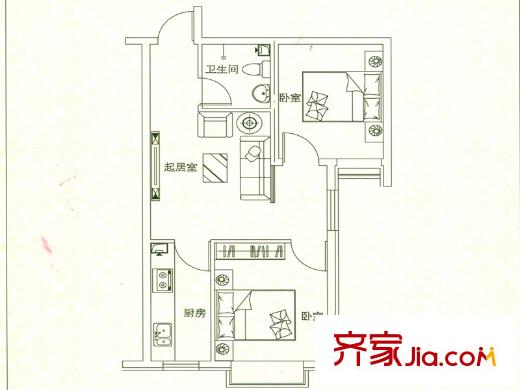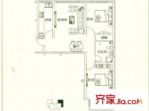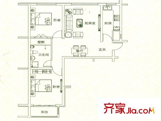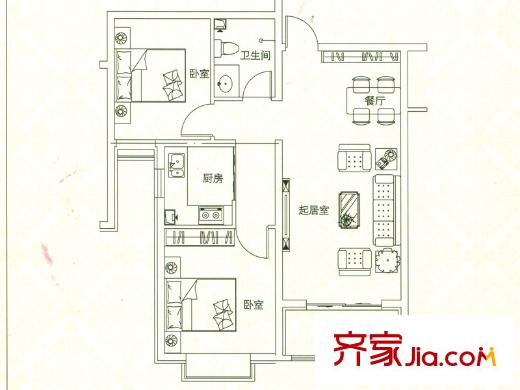 书香茗苑88.00㎡D户型两室两厅一卫88平米户型QQ