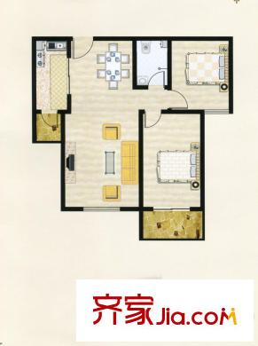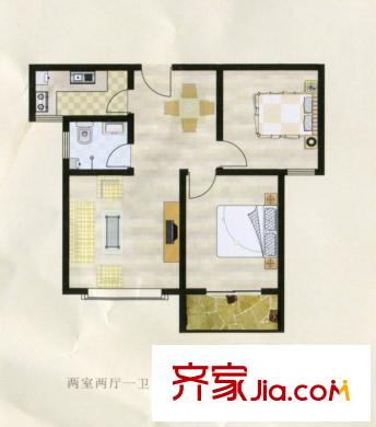 鑫达城97.74㎡两室两厅一卫户型2室2厅2卫