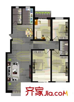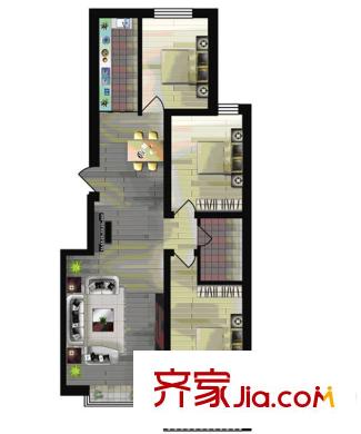 世纪新城二期已售完D户型 3室2厅1卫1厨