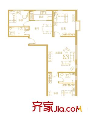 中勘广场・紫勋雍邸已售完2-1-D户型 3室2厅2卫1厨