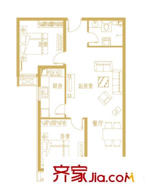 中勘广场・紫勋雍邸已售完2-1-C户型 2室2厅1卫1厨