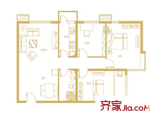 中勘广场・紫勋雍邸已售完1-A户型 3室2厅1卫1厨