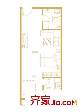 中勘广场・紫勋雍邸已售完2-1-B户型 1室1厅1卫1厨