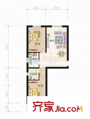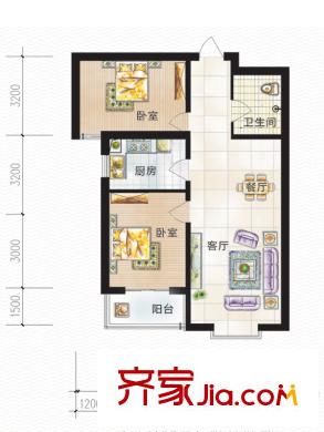 水畔明珠81.32㎡C户型两室一厅一卫户型2室2厅1卫