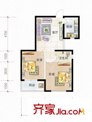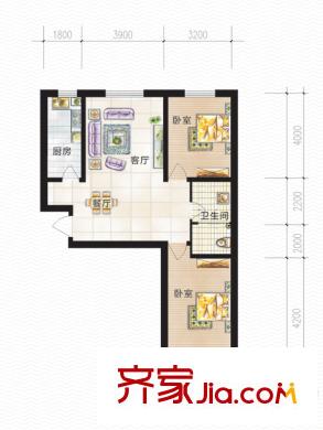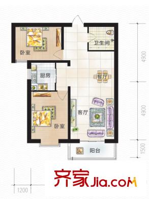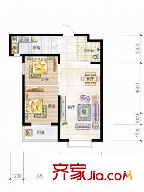 水畔明珠103.60㎡K户型两室两厅一卫户型2室2厅1卫