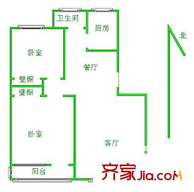 政府二号区户型图两室两厅 2室2厅1卫1厨