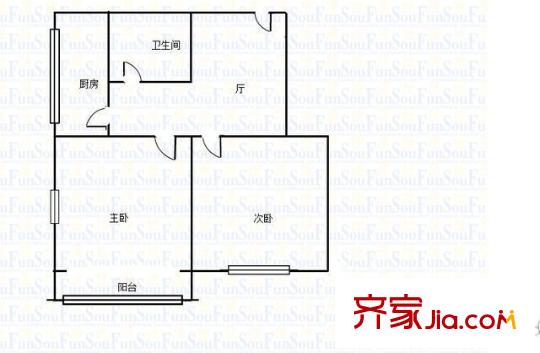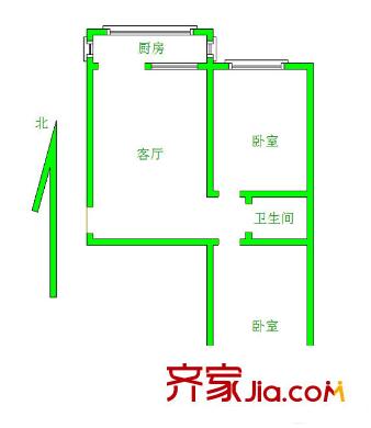 丝绸厂宿舍户型图两室一厅 2室1厅1卫1厨