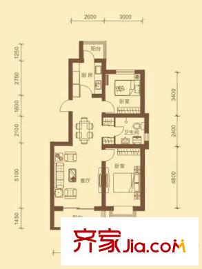 隆泰盛景户型图C户型 2室2厅1卫1厨