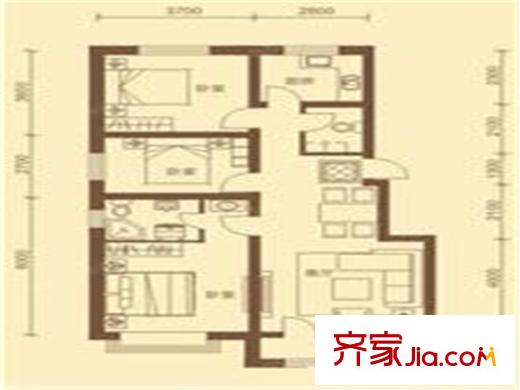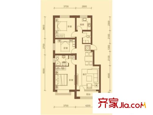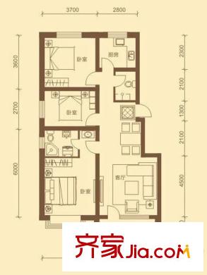隆泰盛景户型图F户型 3室2厅1卫1厨