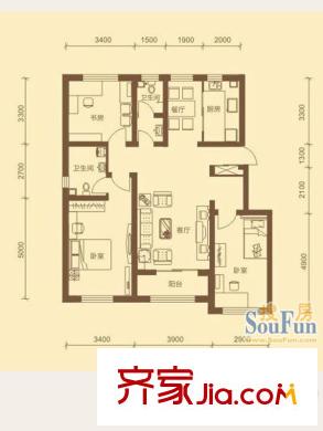 隆泰盛景户型图B户型 3室2厅2卫1厨