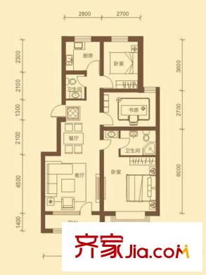 隆泰盛景户型图E户型 3室2厅2卫1厨