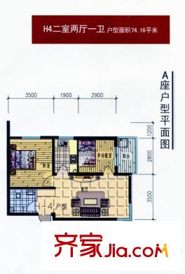 观筑壹号户型图H4户型 2室2厅1卫1厨