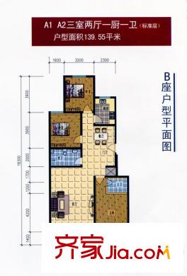 观筑壹号户型图A1 A2户型 3室2厅1卫1厨