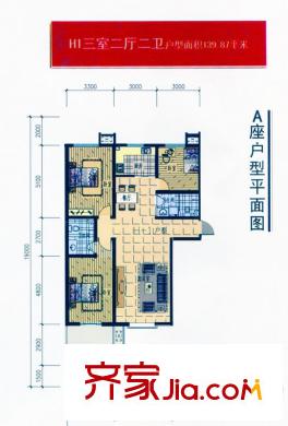 观筑壹号户型图H1户型 3室2厅2卫1厨