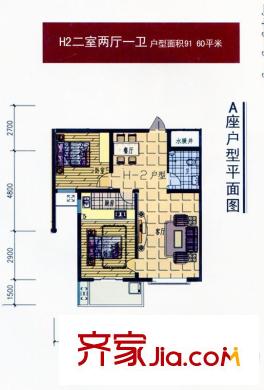 观筑壹号户型图H4户型 2室2厅1卫1厨