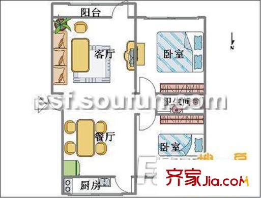 乐凯一区户型图两室一厅 2室1厅1卫1厨