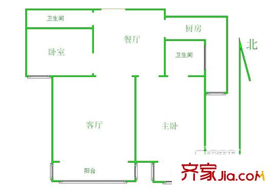 乐凯一区户型图两室 2室2厅2卫1厨