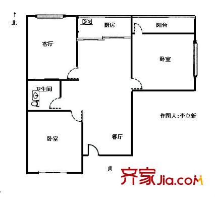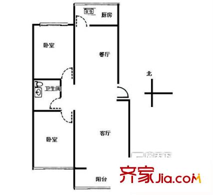 血站宿舍户型图两室两厅 2室2厅1卫1厨