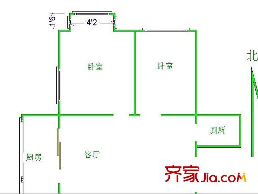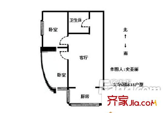 文华国际户型图_两室一厅 2室1厅1卫1厨