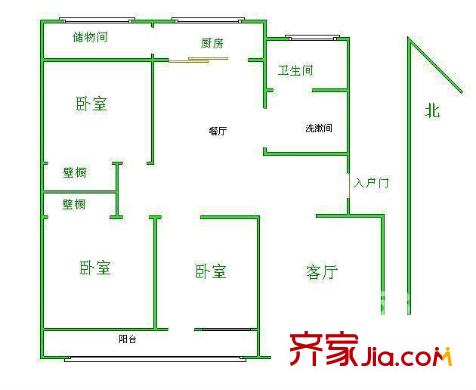 土地局宿舍(时代商厦)户型图 土地局宿舍(时代商厦) 户型图 3室2厅1卫1厨