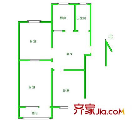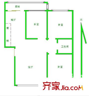 工行宿舍(新市场)户型图三室一厅 3室1厅1卫1厨