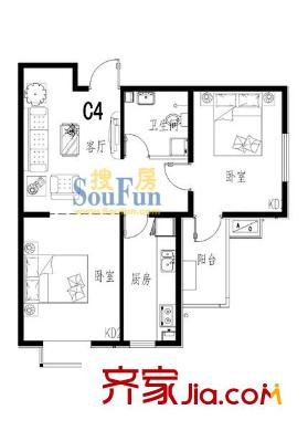 清水河畔户型图两室一厅C4 2室1厅