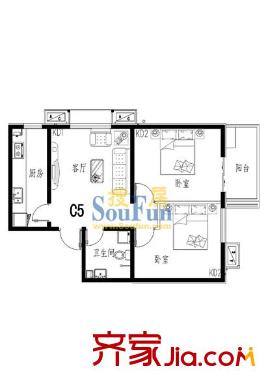 清水河畔户型图两室一厅C5 2室1厅