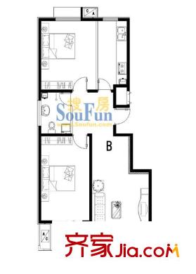 清水河畔户型图两室一厅B 2室1厅