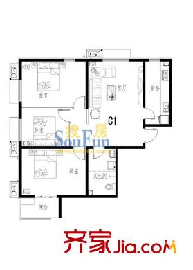清水河畔户型图三室一厅C1 3室1厅