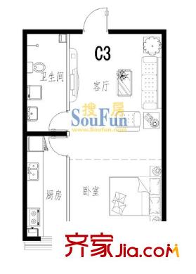 清水河畔户型图一室一厅C3 1室1厅