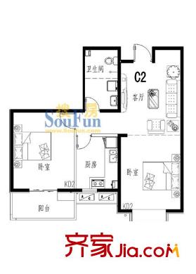 清水河畔户型图两室一厅C2 2室1厅