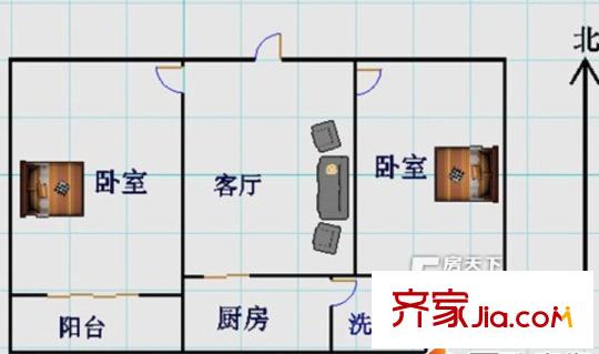 向阳厂北院户型图两室一厅 2室1厅1卫1厨