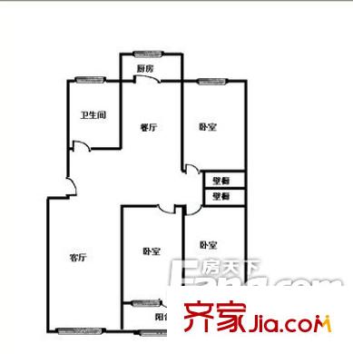 纸厂宿舍户型图三室两厅 3室2厅1卫1厨
